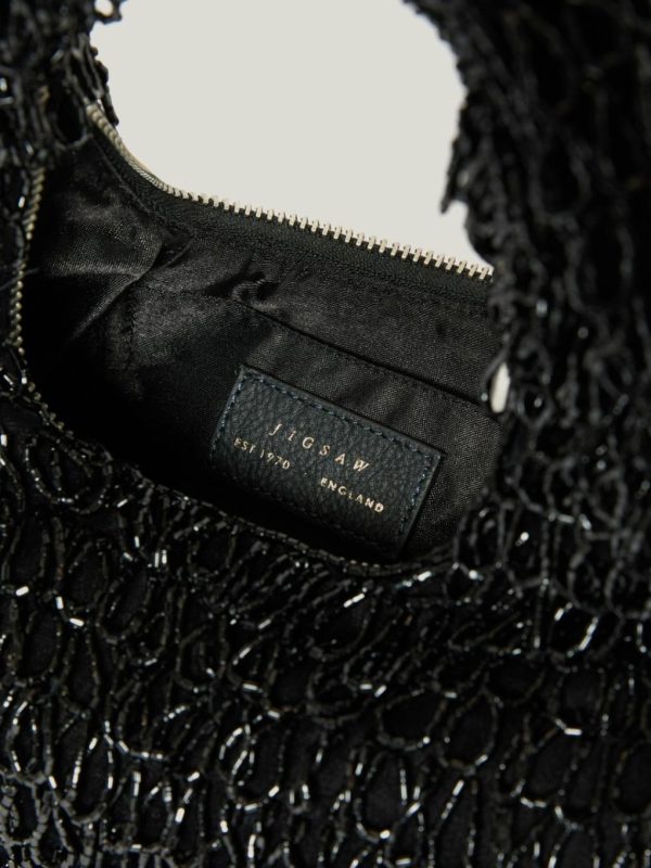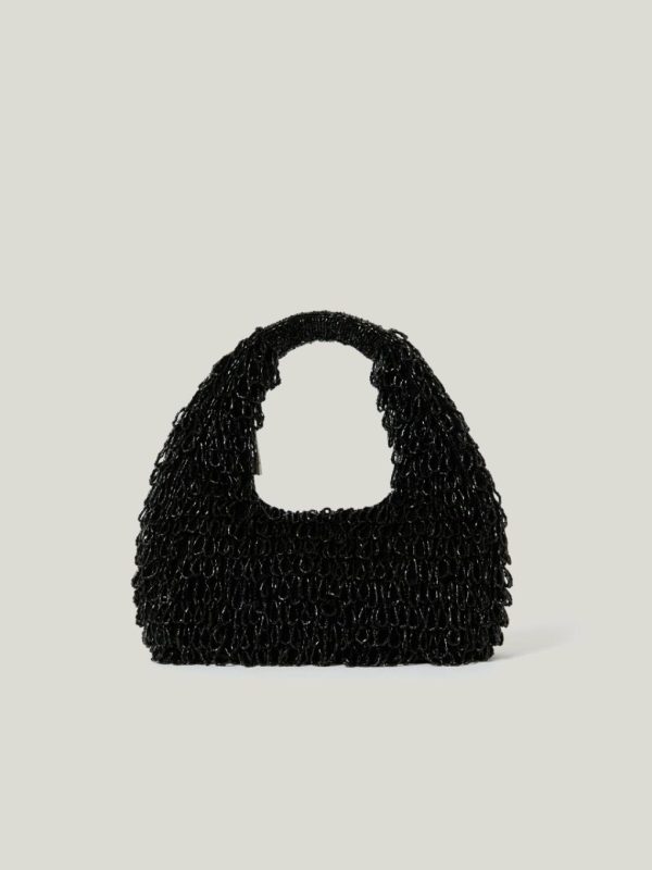 A favourite returns with the Tay mini bag as the perfect party companion for any celebration. The structured, circular shape has been completely embellished in bugle bead embellishment to transform any outfit, complete with a zip fastening and a luxe satin lining.