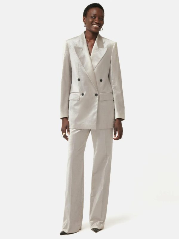 Cut from lustrous velvet, this tailored blazer showcases a straight cut longline silhouette and double-breasted fastening. Features a melton undercollar, internal piping, front flap pockets and a single back vent. Arrives oversized so size down for a more fitted silhouette. Style with matching trousers and waistcoat for the ultimate stand-out suit.Fit and Features