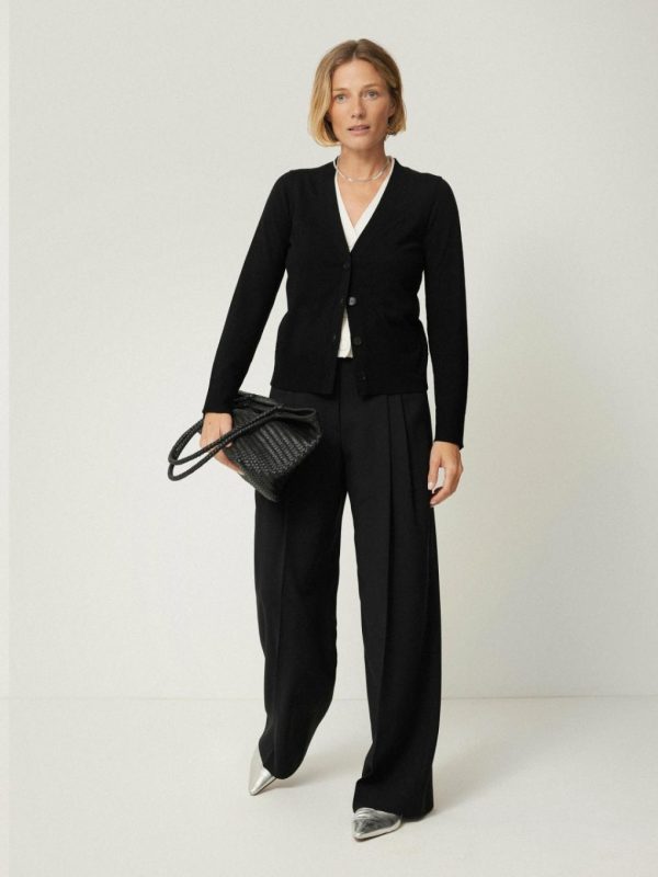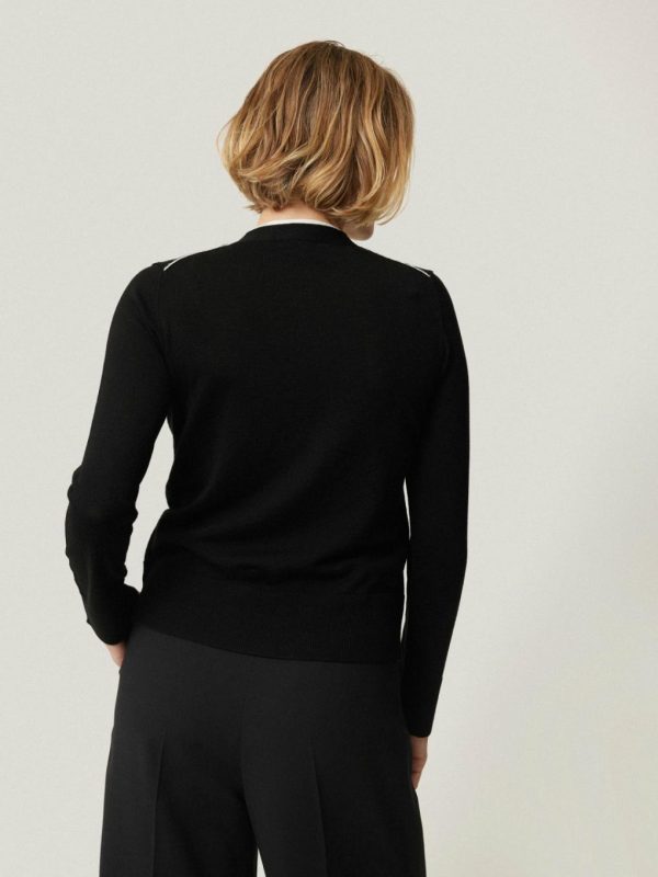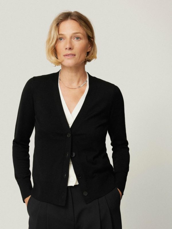 Designed to give the illusion of wearing two layers, this clever-thinking cardigan in soft merino wool features double panels to the front in a monochrome palette. Fasten up over sleek tailored pieces for a polished approach.
