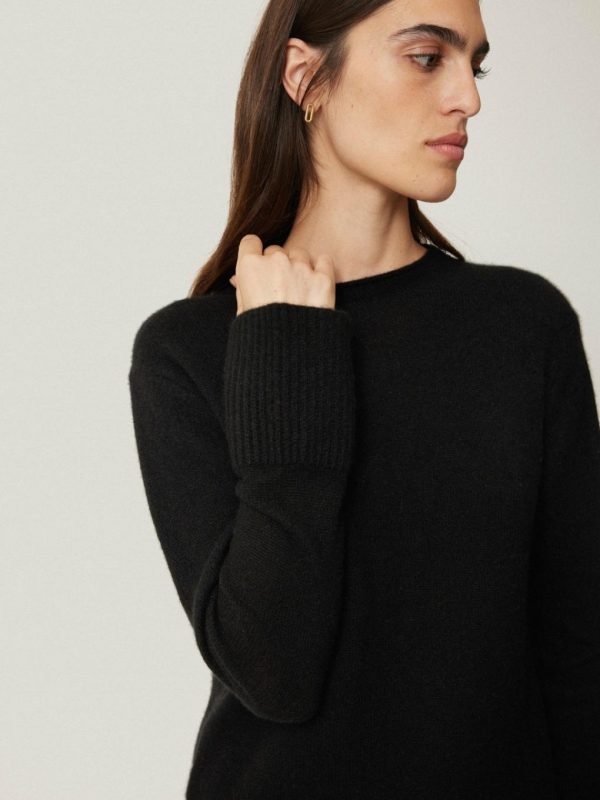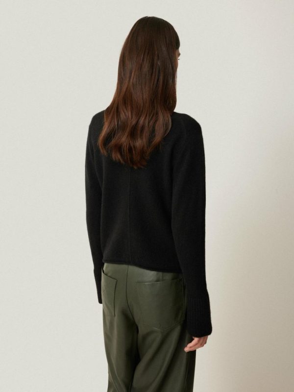 A new shape in our signature Cloud cashmere, the Eldon has a slightly boxier shape, high crew neckline and slim sleeves with a feminine fluted rib cuff detail. Our fully traceable, Cloud cashmere is knitted off gauge for a more lofty, sumptuous and lightweight feel, perfect for transitional layering into cold months. Arriving in a myriad of colours, both neutrals and brights.Fit and Features