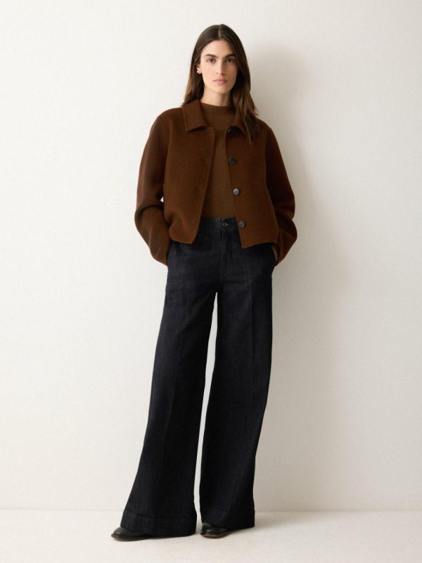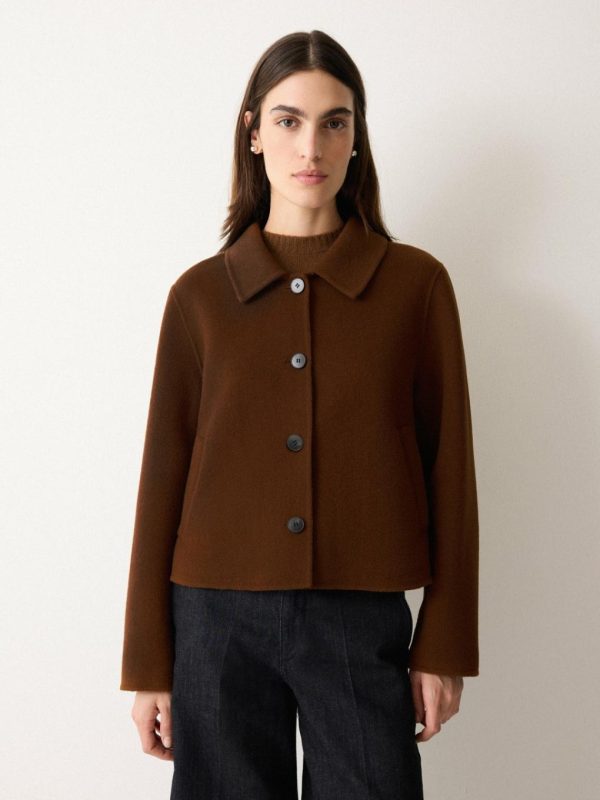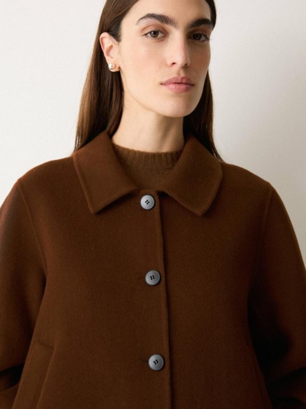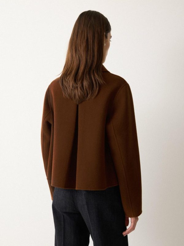When it comes to our double faced designs, we use secret stitching to bond both pieces of wool together for the highest quality and longevity in every piece. This double faced button up coat is a lightweight solution, bridging the seasons in a cropped, boxier cut.