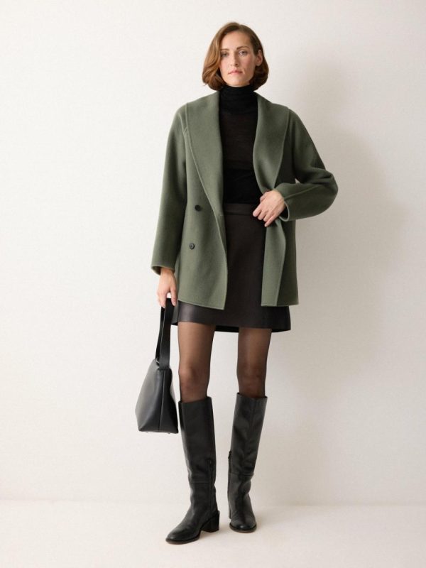 The Double Faced Shawl Coat showcases thoughtful tailoring with a shawl collar, raglan sleeves and a double-breasted front. Cut to a relaxed, softly structured silhouette, our in-house atelier team use secret stitching on all our double faced designs to bond both pieces of wool together for the highest quality and longevity in every piece. The result is an elegant and refined forever coat that layers beautifully over any cold weather ensemble.