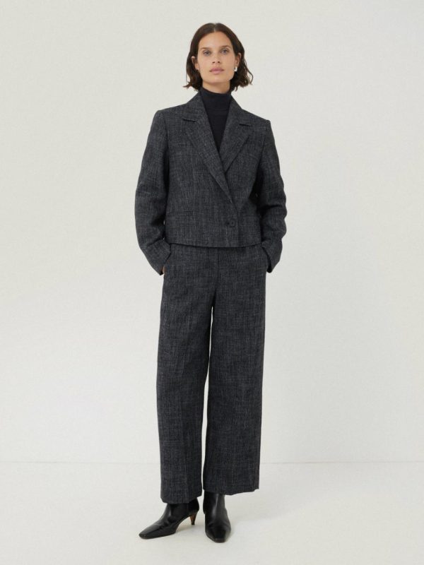 This blazer marries the elegance of boucle tweed with a contemporary cropped fit and a wrap front, blurring the lines between smart and casual wear. Fastened with a single button, wear with the matching trousers or dress down with relaxed denim.