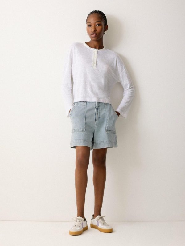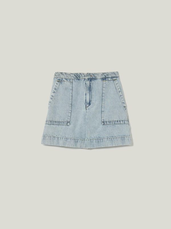 Women Jigsaw Denim | Denim Patch Pocket Short Light Blue Wash