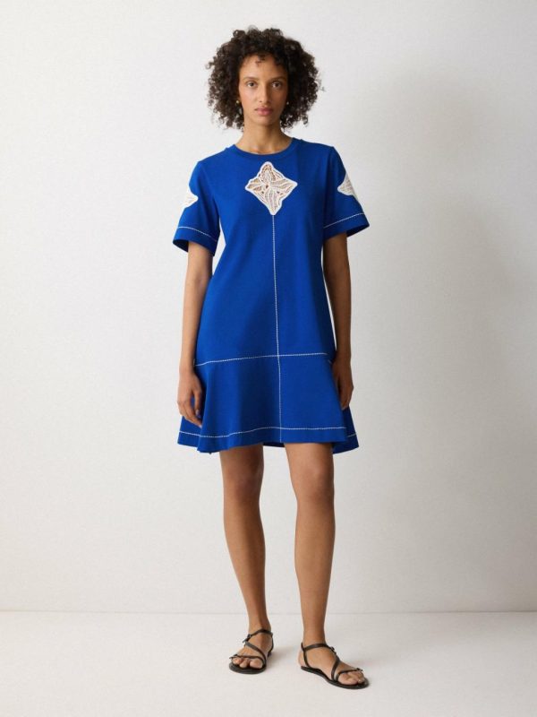Women Jigsaw Dresses & Jumpsuits | Embroidered Short Tshirt Dress Blue