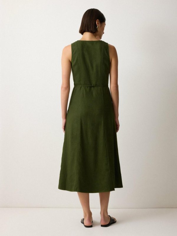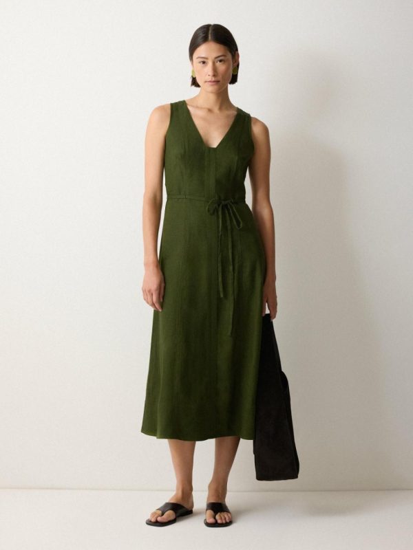 Stitched seam panels create an elongated silhouette with this midi dress for all your summer excursions. Crafted from a beautiful soft linen blend, it also features a detachable self-tie belt to dress up your look for evening with a more cinched-in shape.