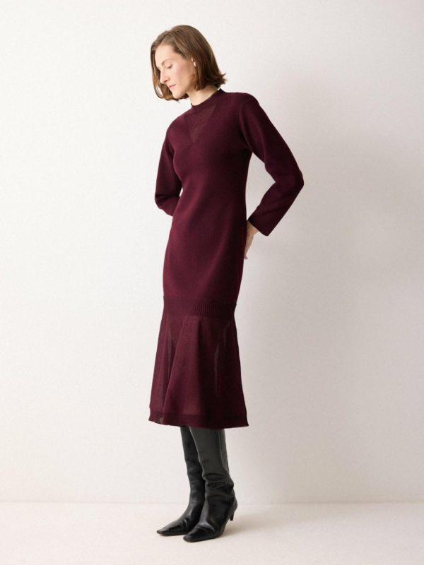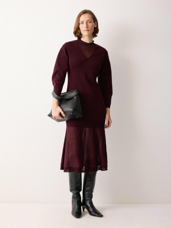 Designed for a playful layered look with impact, this midi dress is elevated with a sheer v-neck and skirt panel in a breathable linen-blend fabric. Super cosy thanks to a sumptuous wool blend, the fit flatters in all the right places, drawing in the waist ever-so slightly for a cinched-in look.