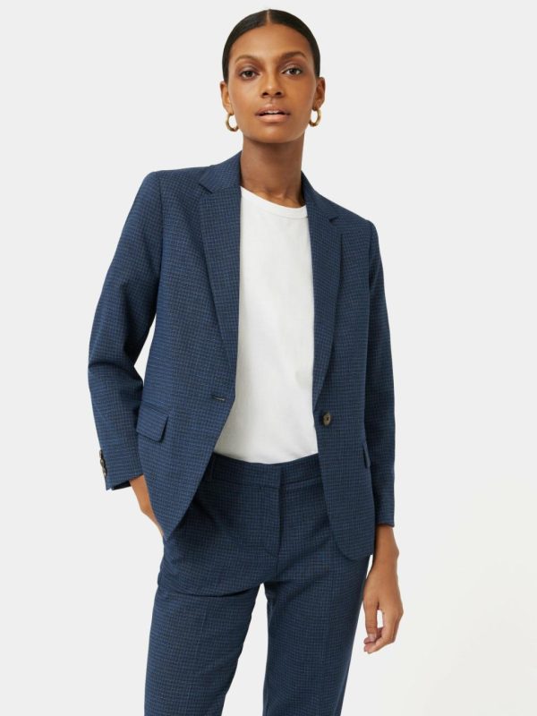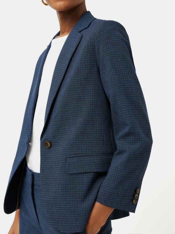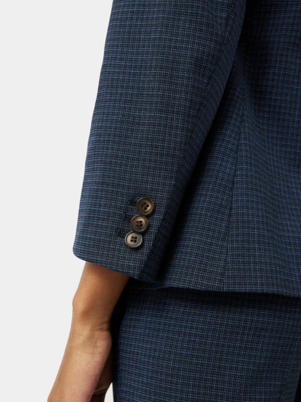 Tailored blazer cut from an Italian wool-blend fabric in blue gingham check. Featuring a single-breasted front and front welt pockets with flaps. Fully lined, elevated by bias piping added to lining seam and Melton under collar. A short casual blazer, perfect for light layering. Complete the set with our Portofino Palmer Check Trouser or pare back with some denim jeans.Fit and Features