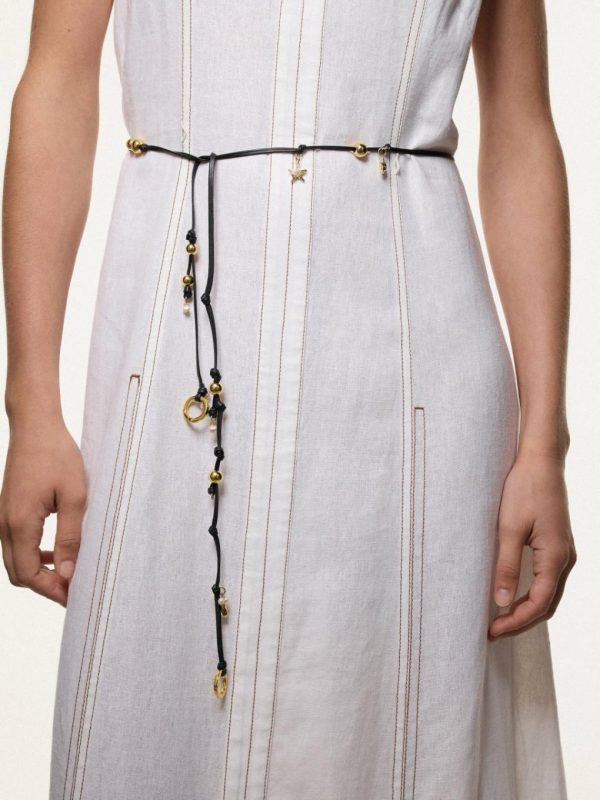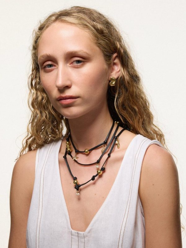 Not just a necklace, this leather accessory can be playfully experimented a multitude of ways, from a necklace to a belt and a wraparound bracelet. Festooned with summer-inspired beads and trinkets, it will quickly become your go-to piece.