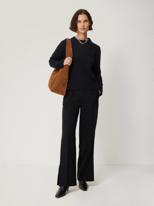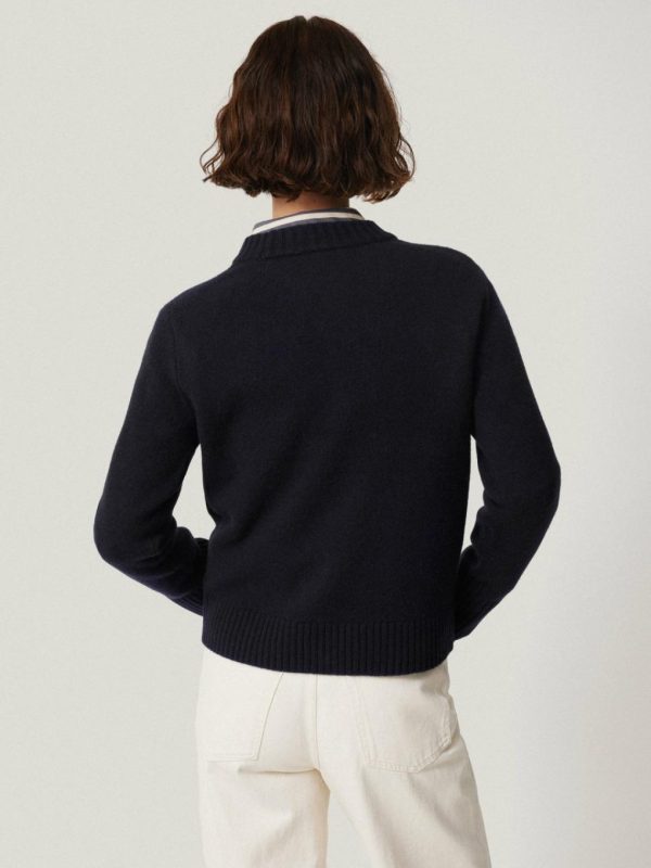 Knitted in a mid weight wool cashmere blended yarn, our crew neck jumper is designed with a shorter silhouette. Finished with modern chunky rib at neck and cuffs. Pair with denim and leather separates or layer over printed dresses. Size up for a more slouchy look.Fit and Features