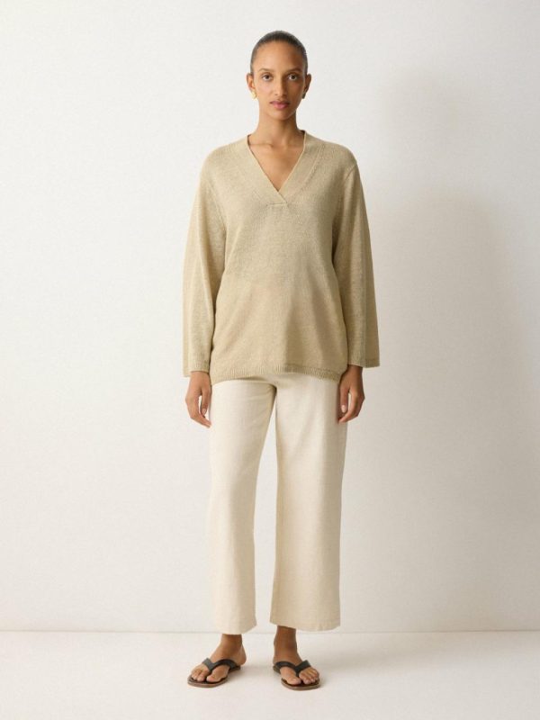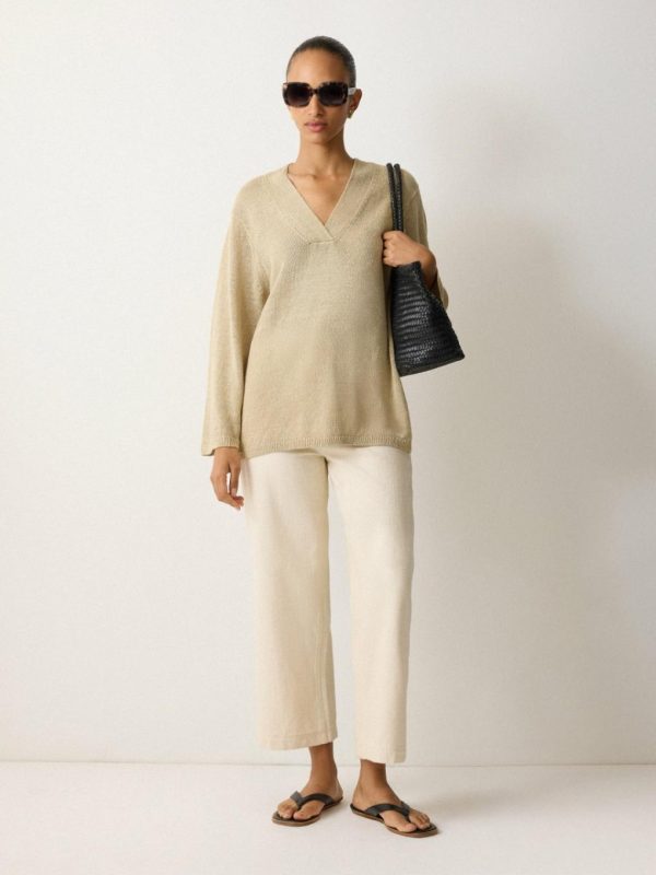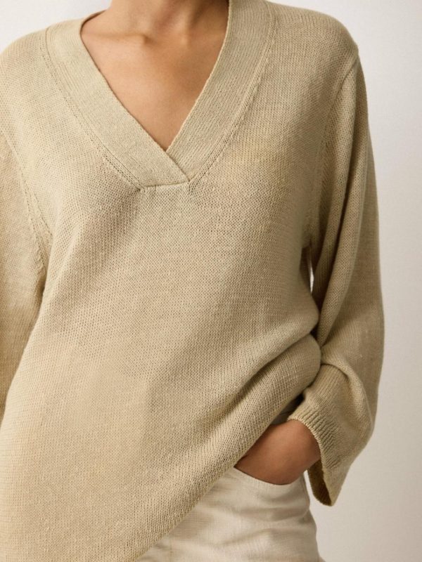 Proof knitwear isn’t just reserved for the winter months; this V-neck jumper is perfect for the summer too, knitted from a soft, breathable linen with a slouchy, oversized fit for keeping cool.