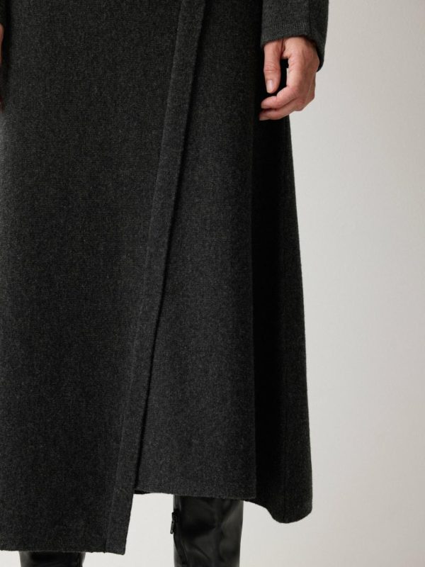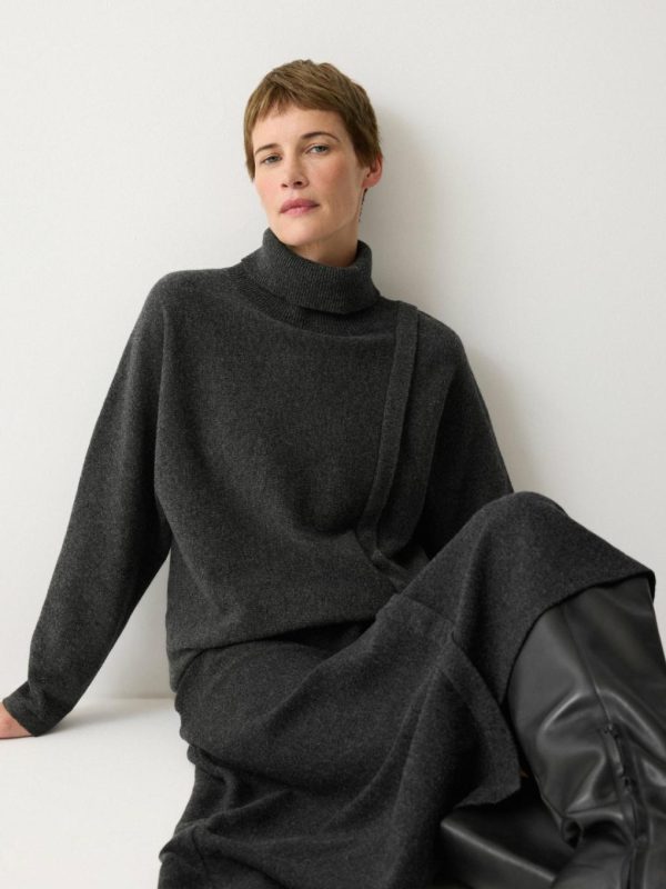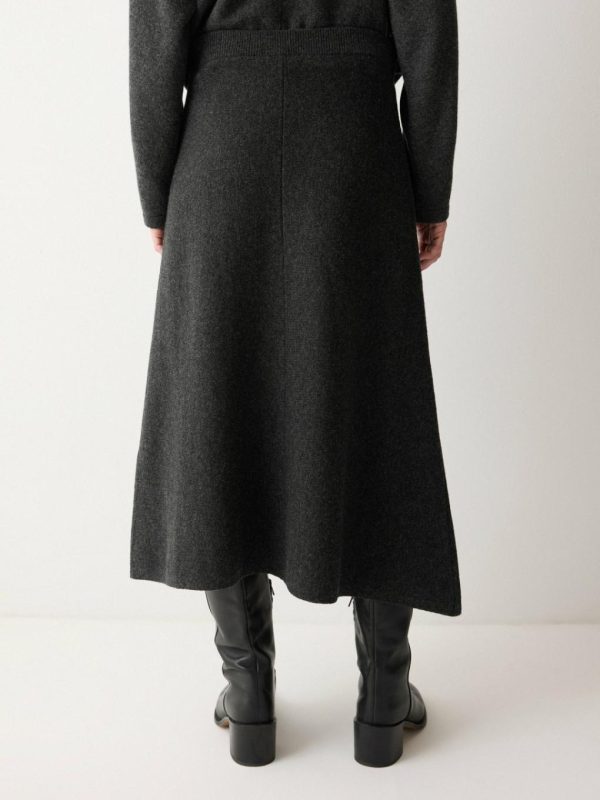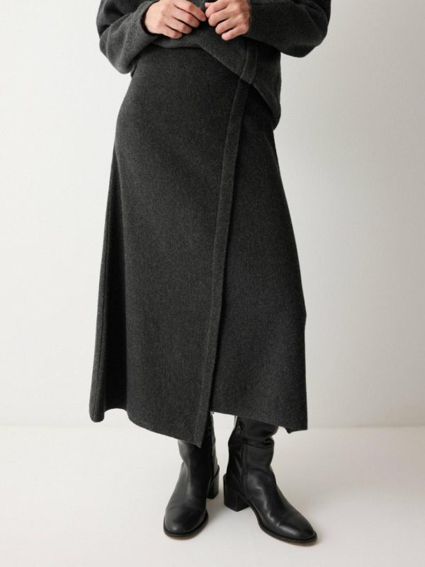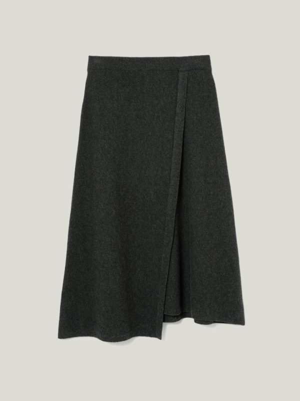Pure wool lends this skirt a lightweight, cosy feel while still exuding a classic yet contemporary look. The ribbed soft A-line shape is accentuated by a front overlap seam, alongside asymmetrical hem, making this knit a sophisticated choice for the colder months.