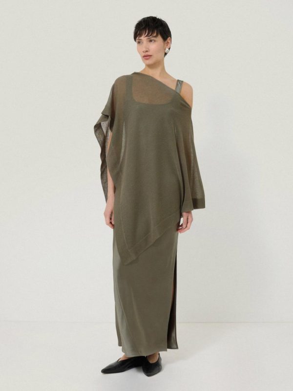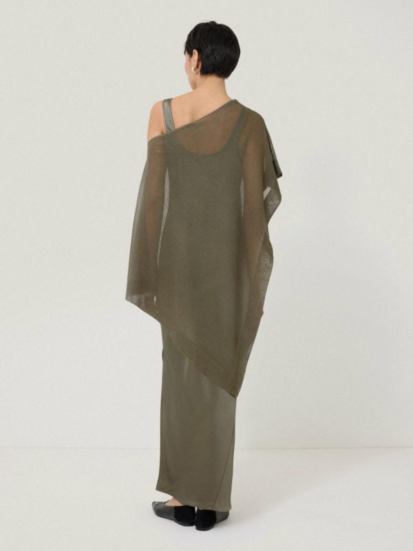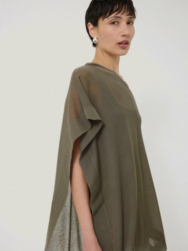 Women Jigsaw Knitwear & Cashmere | Sheer Linen Blend Poncho Khaki