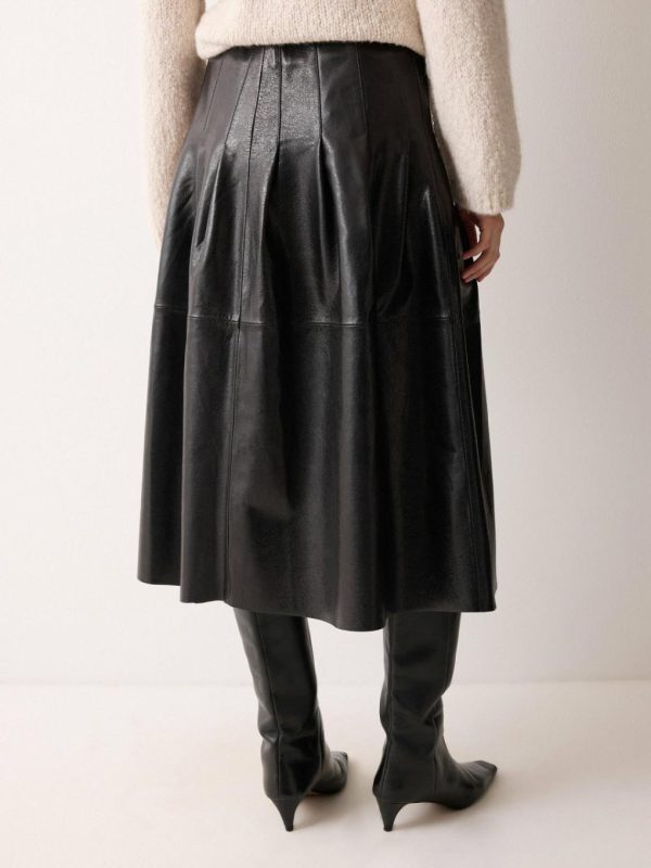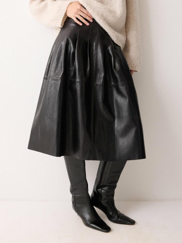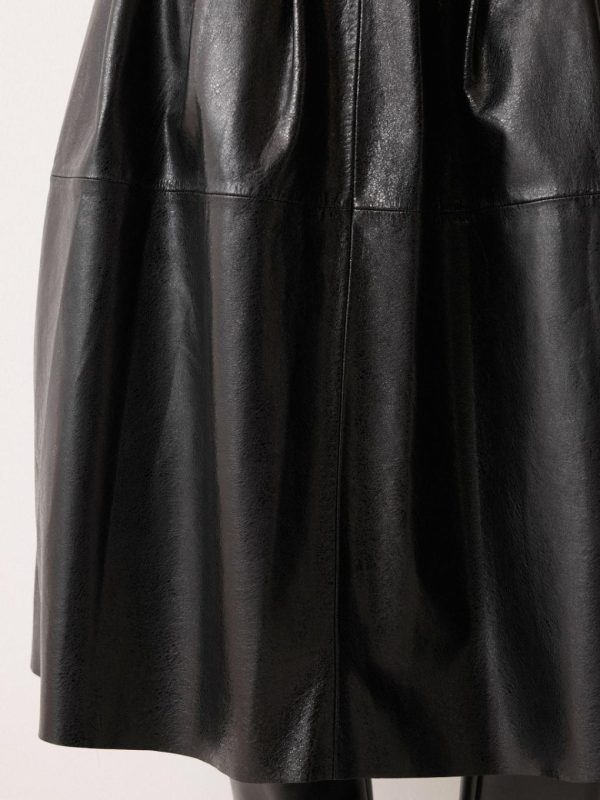We’ve gone to great lengths in terms of volume when crafting this midi skirt. A play on a traditional silhouette, it’s finished with front pleat detail that results in a more voluminous A-line shape. With age and wear, the supple leather will develop a natural patina, resulting in a piece that’s entirely unique.