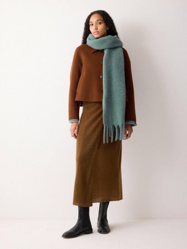 Offering the perfect combination of style, warmth and colour, this chunky fringed scarf is blended from super soft alpaca yarns for a fuzzy, tactile finish.