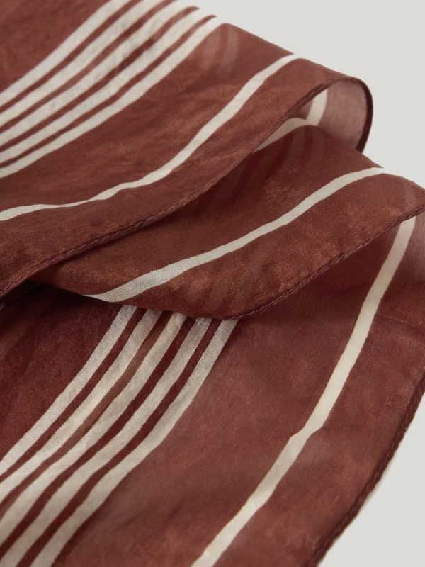 Earn your style stripes with this wide brown and white scarf for the new season. Gentle against the skin in pure silk, drape over your smart and casual ensembles for a bold injection of print.