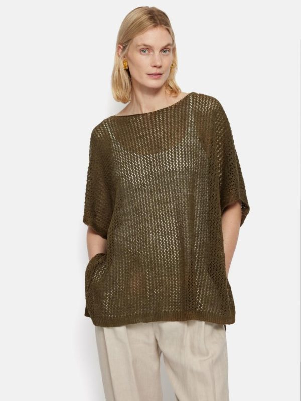 The perfect layer for cool summer nights, this lace knit poncho is made from breathable 100% linen. Arriving in a relaxed neutral cream and an deep earthy khaki this poncho will elevate your summer casual look. Layer over shorts and tee or a laid back summer dress.