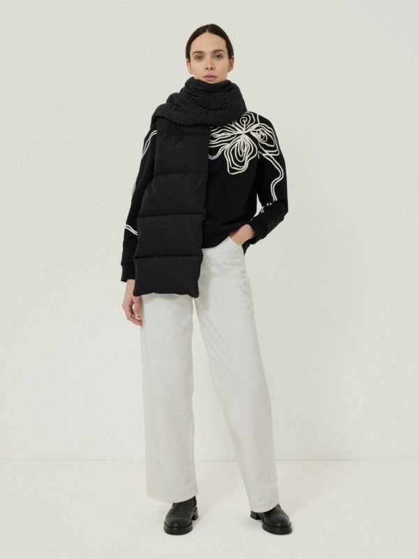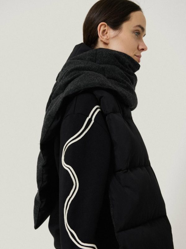 Women Jigsaw Ponchos & Scarves | Puffer Knit Scarf Black