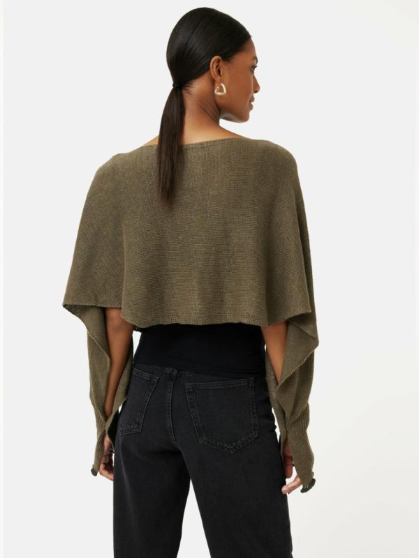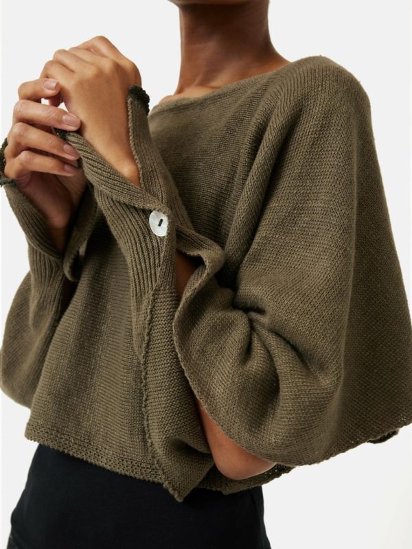 Crafted from pure linen, our poncho jumper is the perfect lightweight layer of the season. A casual fit with a draped hem and slashed neckline opening. Features a ribbed cuff with a contrast trim and a button fastening, wear open or closed depending on desired silhouette.tte.Fit and Features