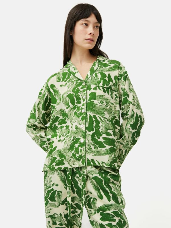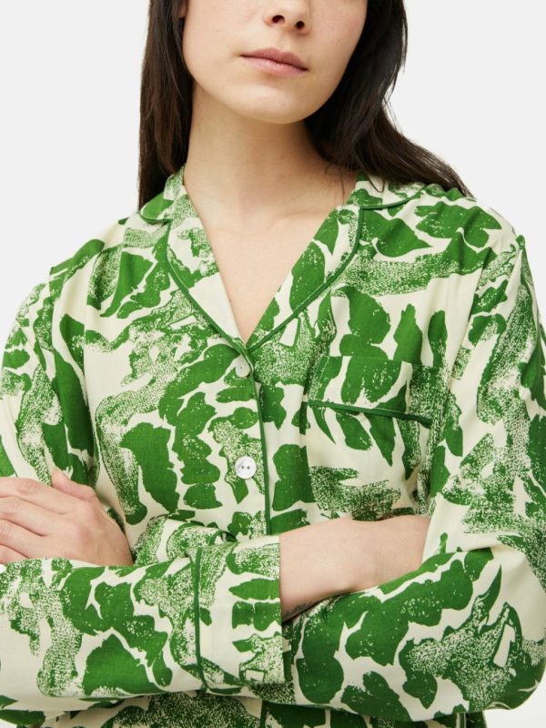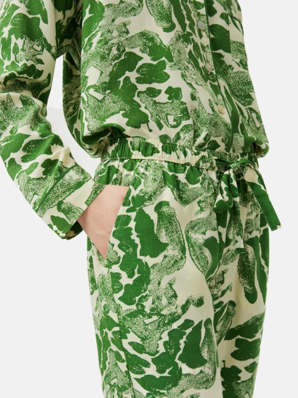 Our monochromatic Ink Wave printed pyjama cut in supersoft modal is a perfect for gifting. Contrast piping and embossed mother of pearl buttons. A comfortable, relaxed fiting shirt style with single chest pocket and easy drawstring waisted bottoms with side pockets.Fit and Features