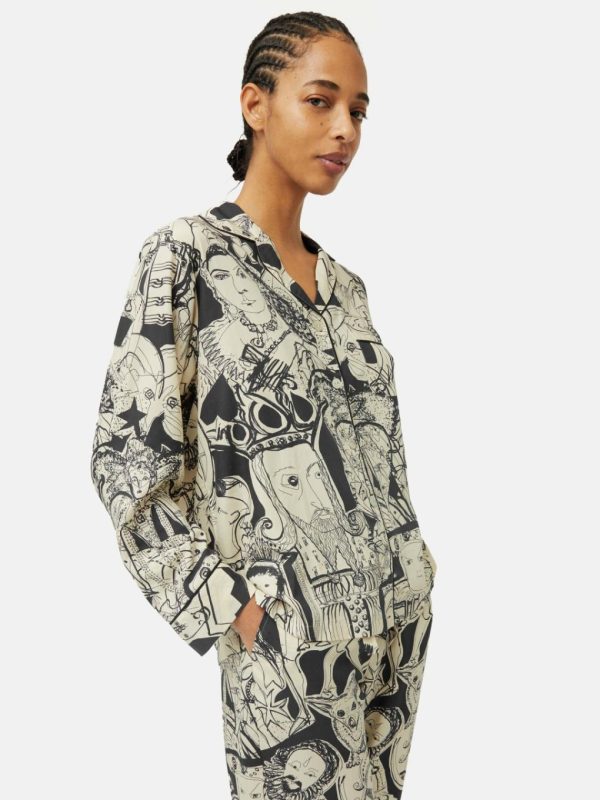 Created in honour of the coronation, our signature pyjama arrives in our exclusive ‘Kings and Queens’ print commissioned by returning collaborator, Janet Lance Hughes. Cut from a luxurious cotton modal blend, it boasts a breathable feel and features exquisite contrast piping and embossed mother of pearl buttons. With its comfortable, relaxed fit, the shirt-style top includes a single chest pocket, while the easy drawstring-waisted bottoms come equipped with side pockets for ultimate ease and convenience.