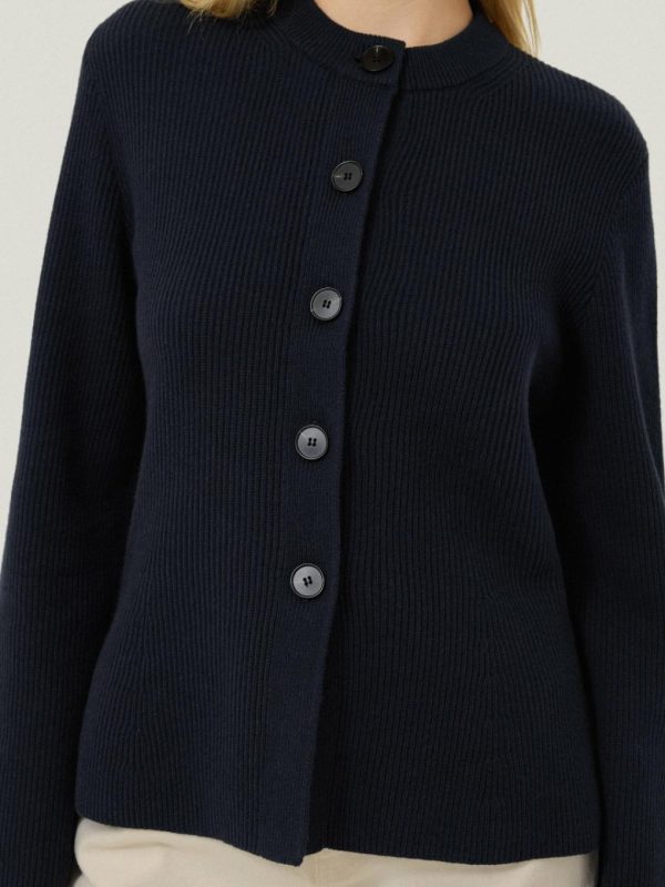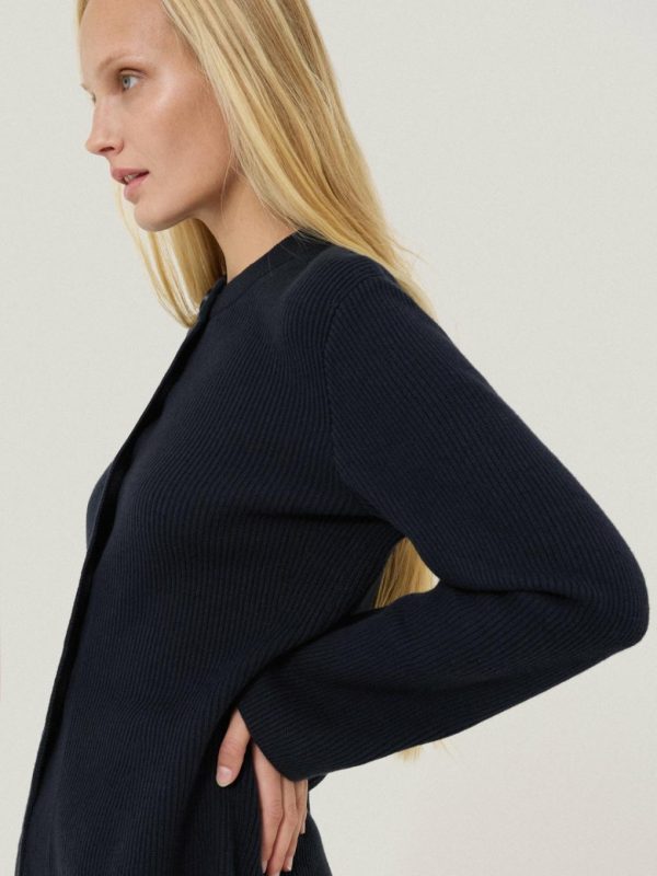 A classic piece of knitwear with endless style mileage; this ribbed knit cardigan has been crafted from a soft cotton blend, making it perfect for layering throughout the colder months, as well as wearing in spring. A subtle fluted hem embodies an elegant silhouette for day or night.
