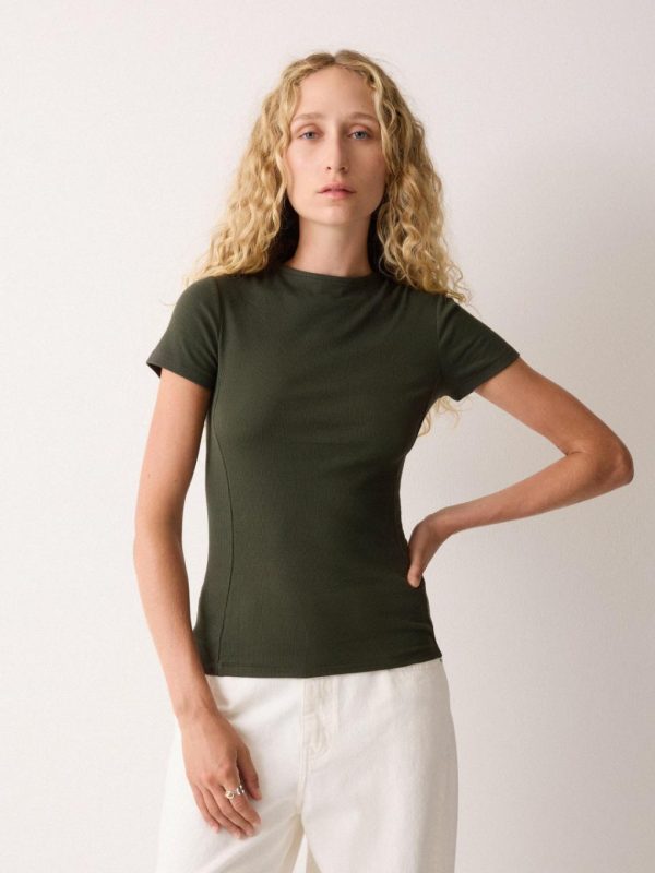 Women Jigsaw Shirts & Tops | High Neck Seam Detail Top Khaki