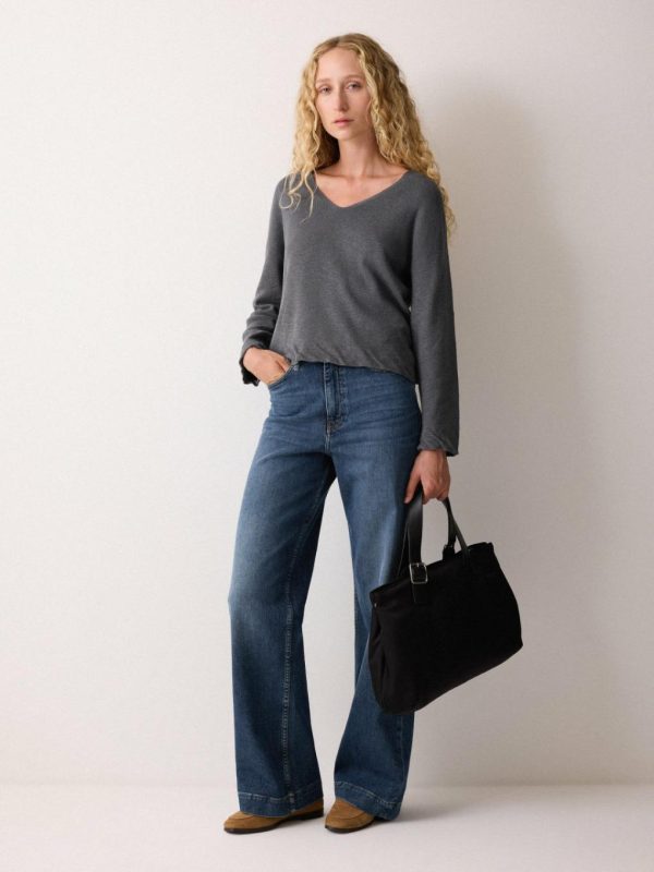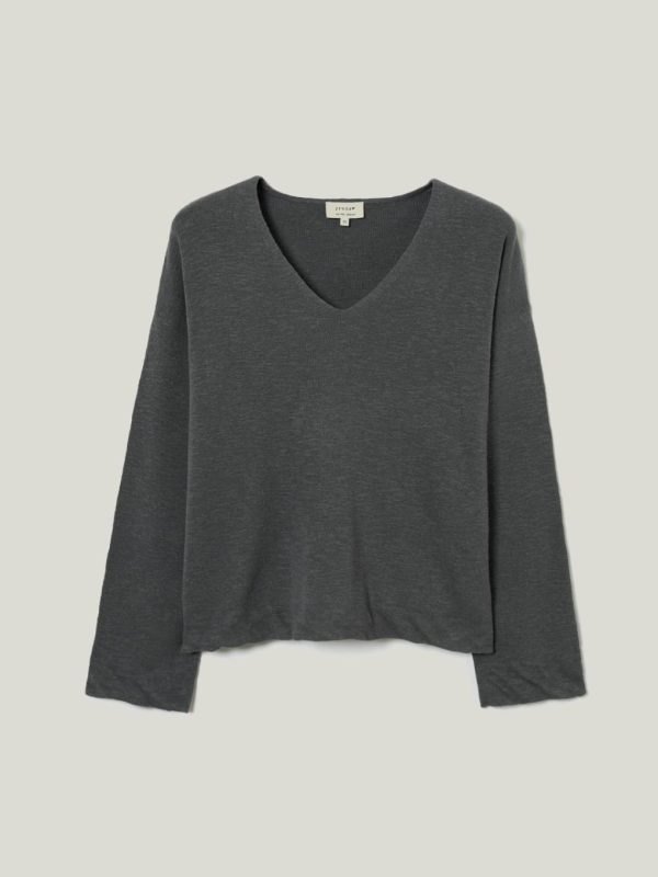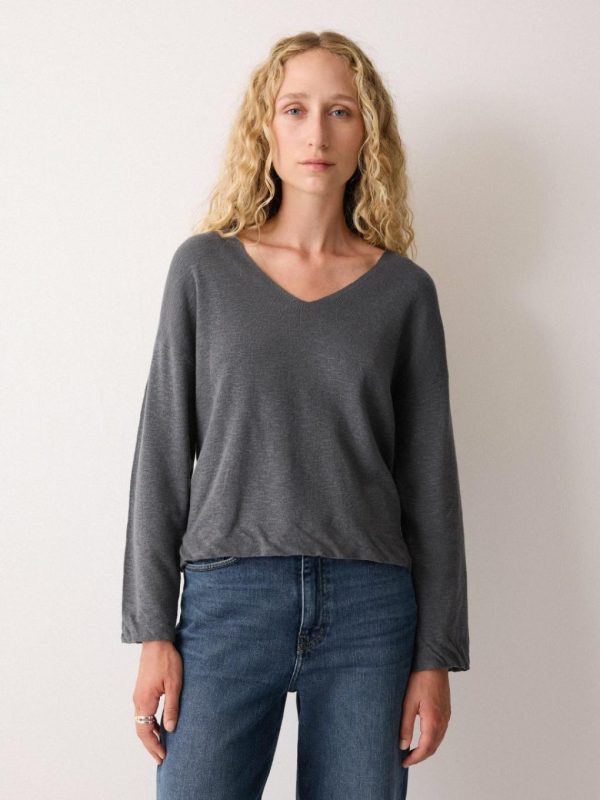 Shaped for a cropped, boxy fit, this V-neck jumper is the perfect throw-on piece once the sun sets. A refined blend of linen and cotton lends lightweight breathability and softness.