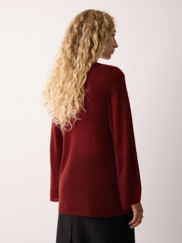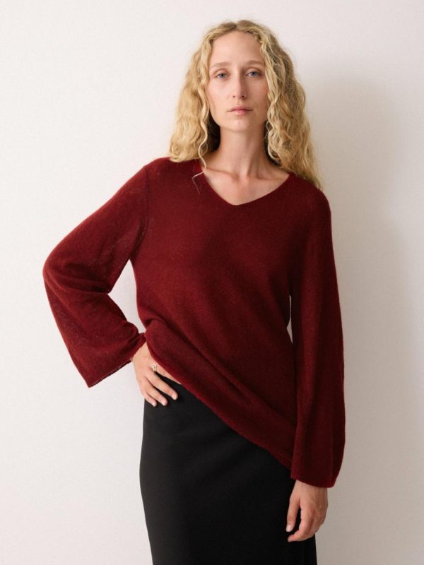 This v-neck jumper elevates downtime at home and beyond in a sheer gauze knit, which has been infused with drapey lyocell and ultra-soft alpaca yarns for true comfort and warmth. Forming part of a skirt in the same fabrication, co-ordinate the two pieces for a cosy head-to-toe look.