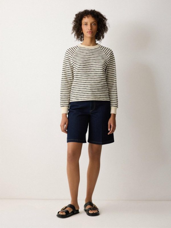 Women Jigsaw Shirts & Tops | Textured Stripe Sweatshirt Navy