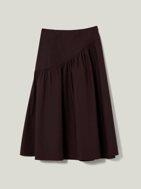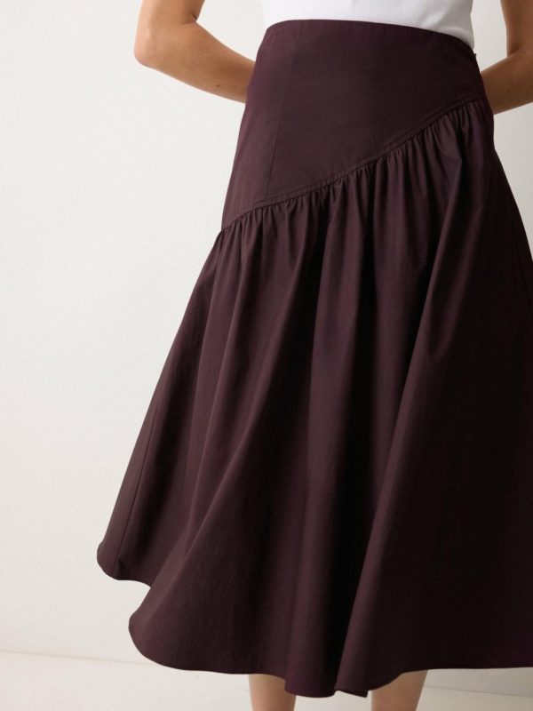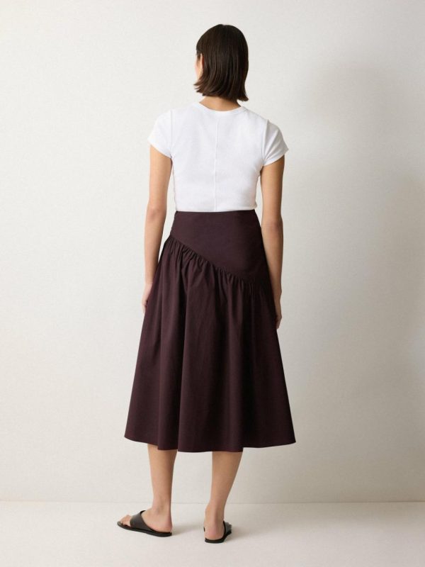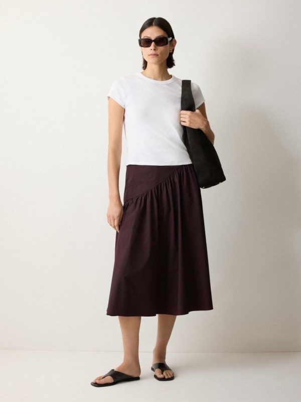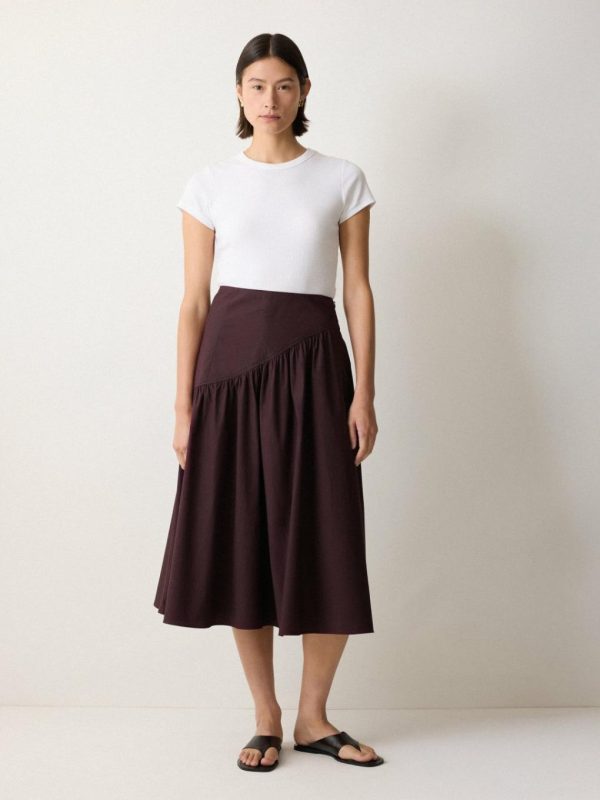 Add this midi skirt to your summer rota for everyday wear. Asymmetric hem detail adds a contemporary twist with gentle gathering. Falling gracefully below the knee, complement the rich oxblood hue with a simple white top.