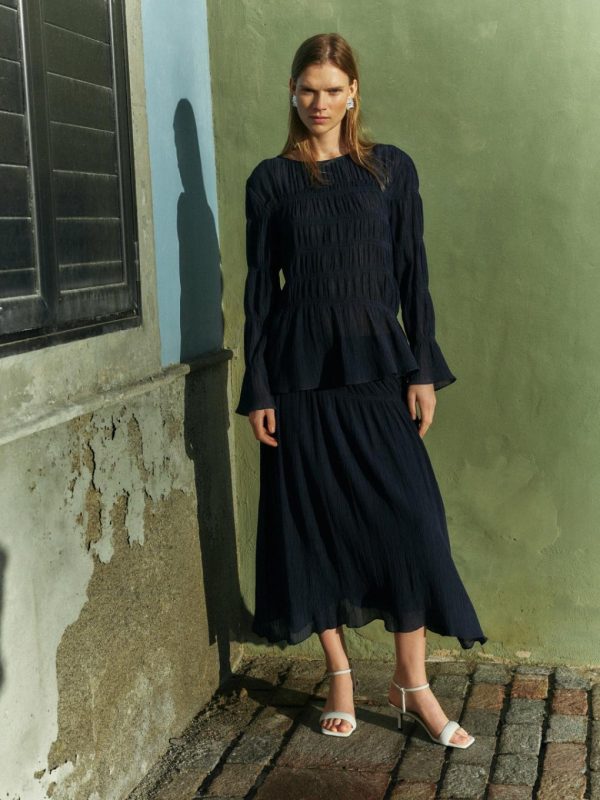 Women Jigsaw Skirts | Gauze Viscose Ruched Skirt Blue