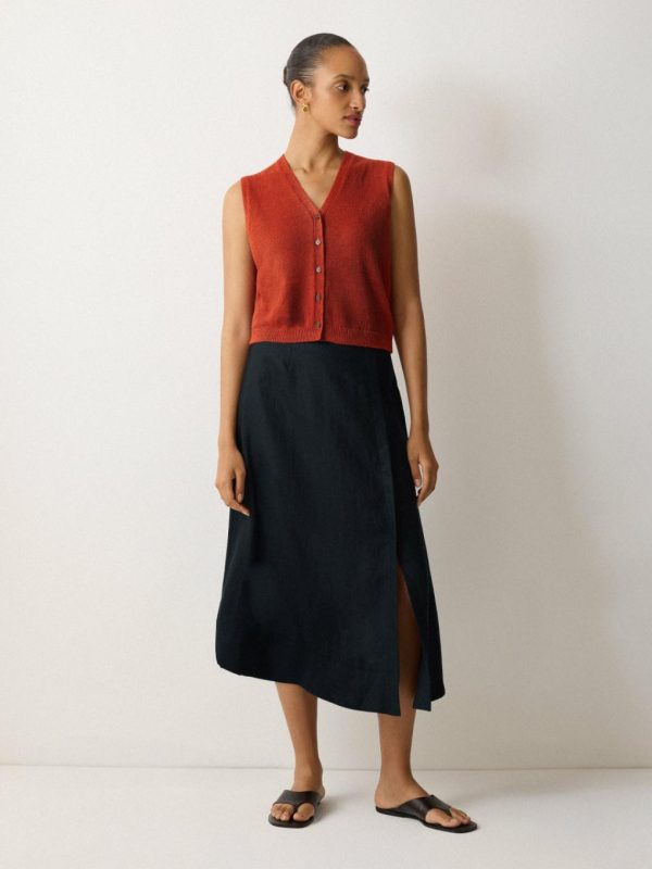 Both elegant and versatile, this fluid midi skirt has been crafted from an airy linen fabric, perfect for the summer months. A wrap front is designed to flatter day or night.
