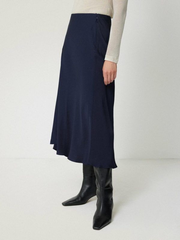 Women Jigsaw Skirts | Satin Bias Asymmetric Skirt Navy