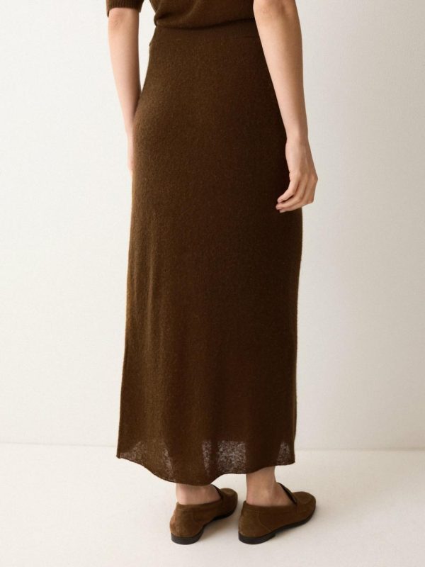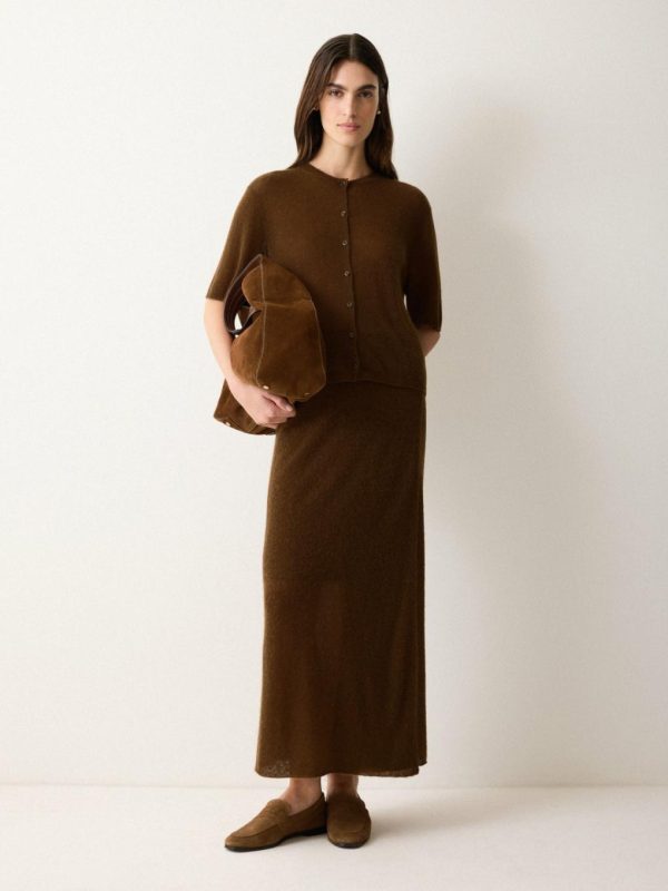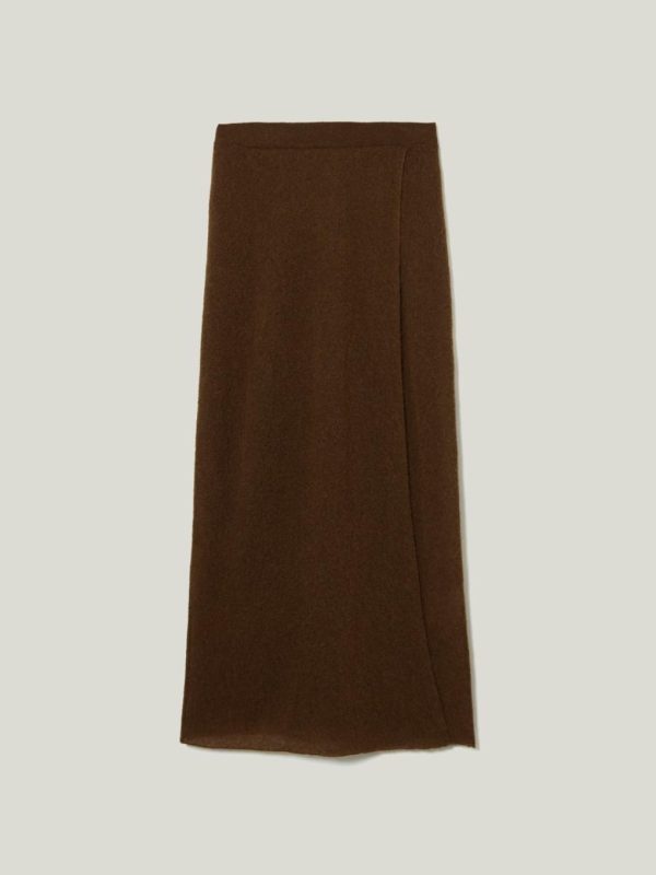 This midi skirt elevates downtime at home and beyond in a sheer gauze knit, which has been infused with drapey lyocell ultra-soft alpaca yarns. The slim fit and fixed wrap front creates a flattering look. Forming part of a skirt, t-shirt and jumper in the same fabrication, wear all three pieces for a cosy head-to-toe look.