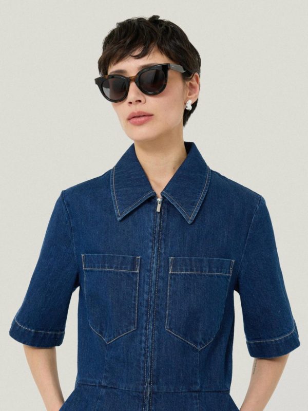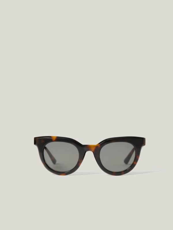 A contemporary take on the classic cat eye shape, these sunglasses have been shaped with a rounded silhouette and have been crafted from a sustainable bio acetate. Fitted with dark grey lenses, their glamorous profile offers UV 400 protection and will delight any sun seeker.