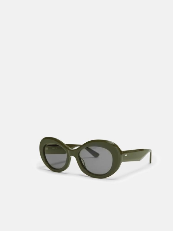 Modern oval shape, with soft bevelled frames and fitted with dark lenses. The Upton Oval Sunglasses arrive in 2 colours: a classic tortoise shell and colour of the season olive. Made with biodegradable acetate these sunglasses include a protective case and cleaning cloth.