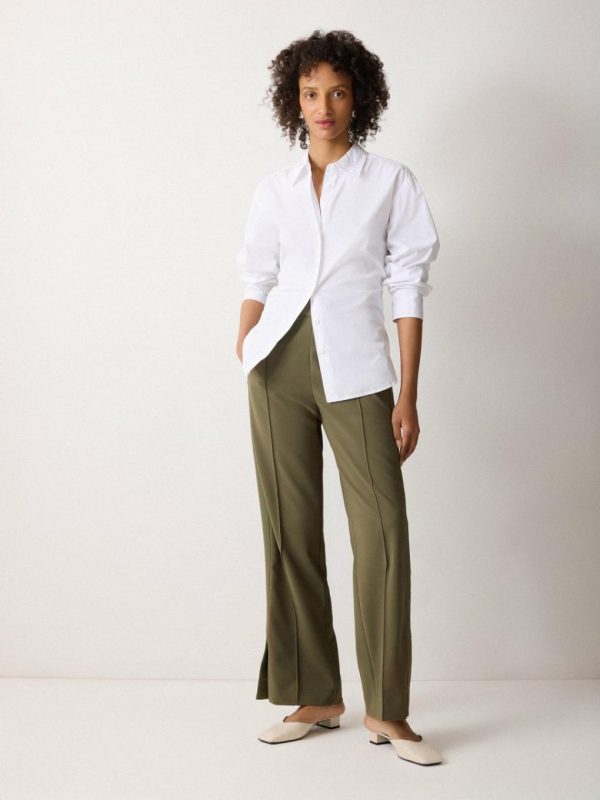 We have elevated the sporty jogger in a soft Italian crepe for wearing outside the confines of comfort. Contrasting side panels and split hem fronts at the leg add a contemporary spin, finished with pin tuck creases.