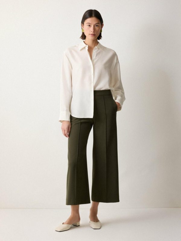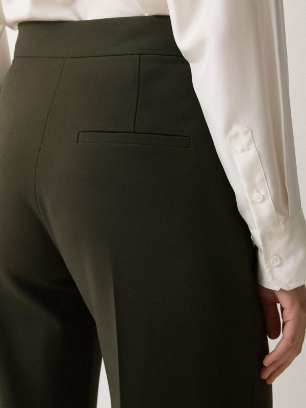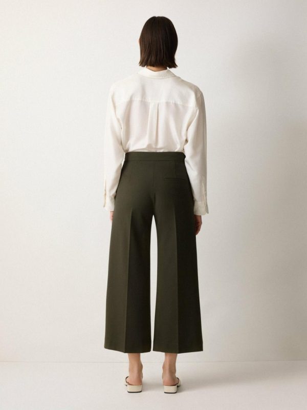 Women Jigsaw Trousers | Italian Modern Crepe Sailor Trouser Dark Olive