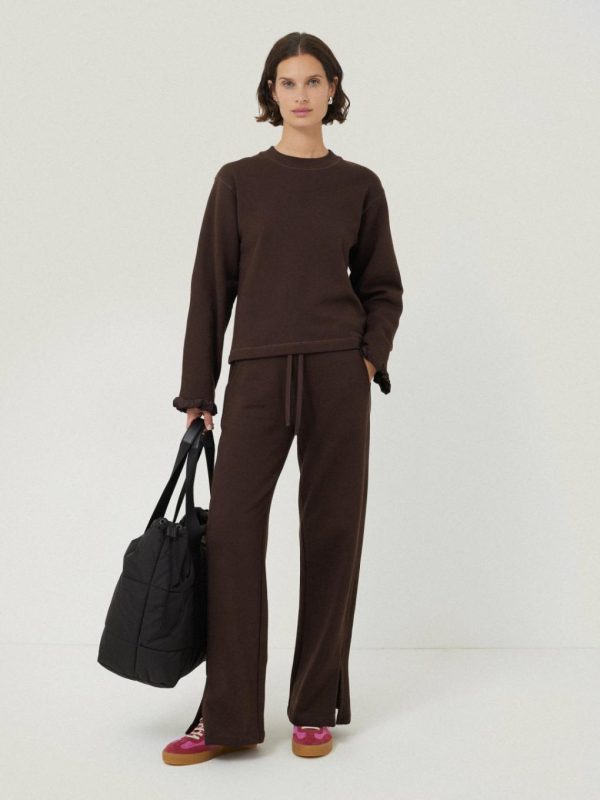 Women Jigsaw Trousers | Satin Waistband Jersey Joggers Chocolate