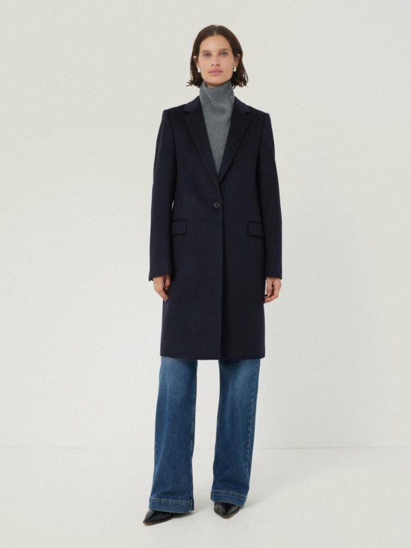 Patterned in-house and crafted from a lustrous, pure brushed wool, the city coat is designed with a softer shoulder for a more relaxed fit. The single-breasted front is accented with a button closure, a melton under collar and jet flap pockets. An autumn to winter staple that styles perfectly over denim or tailoring.